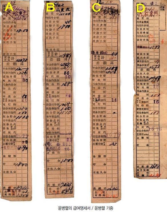 朝鮮人徴用工の給与明細によると、手取り35円から53円で総支給額が130円ほどとなっていた。