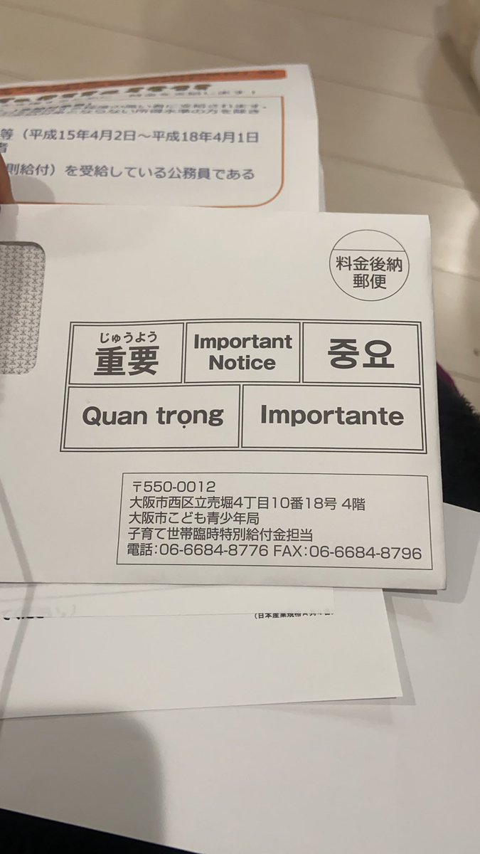 >子育て世帯への臨時特別給付の封筒がヤバいやん